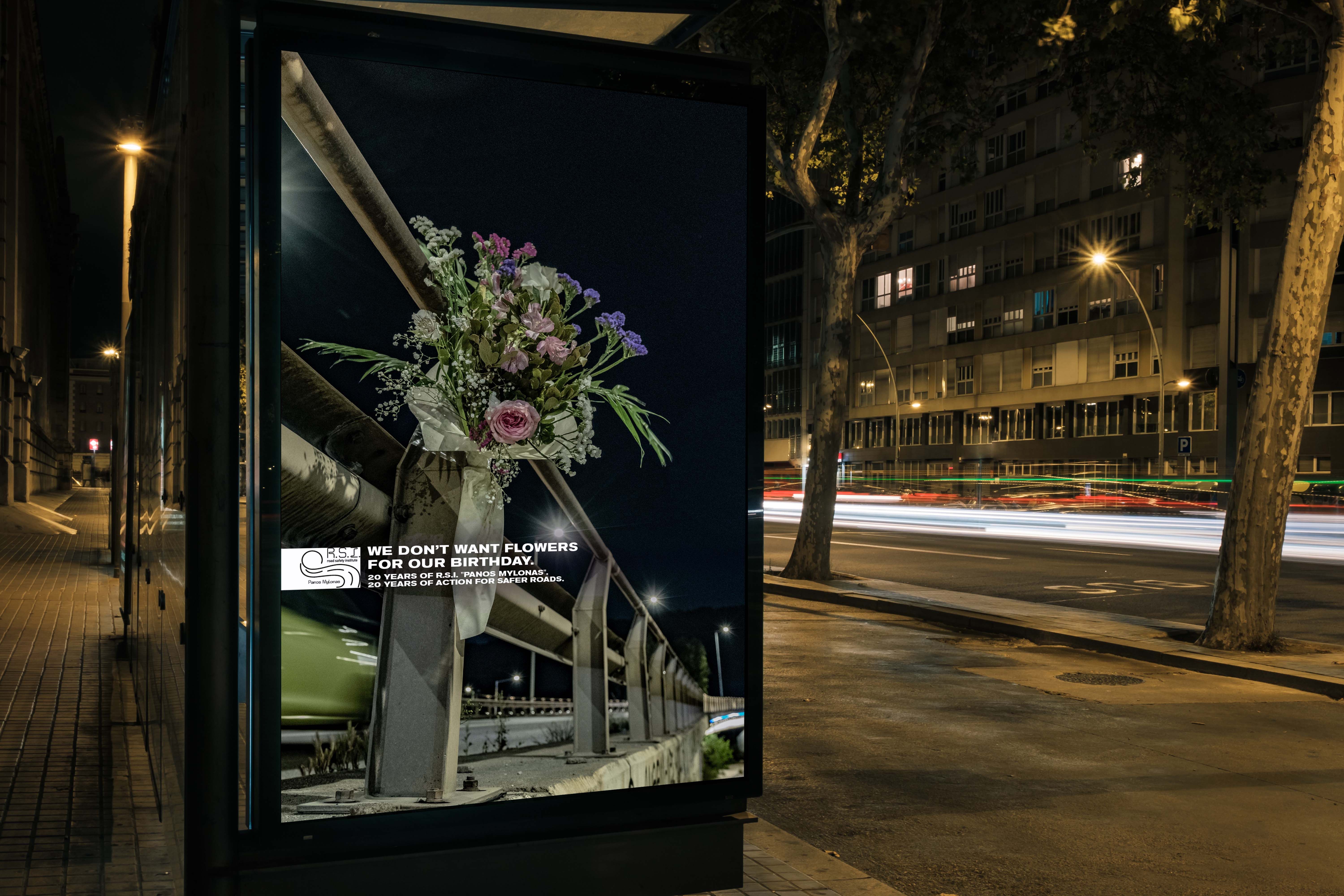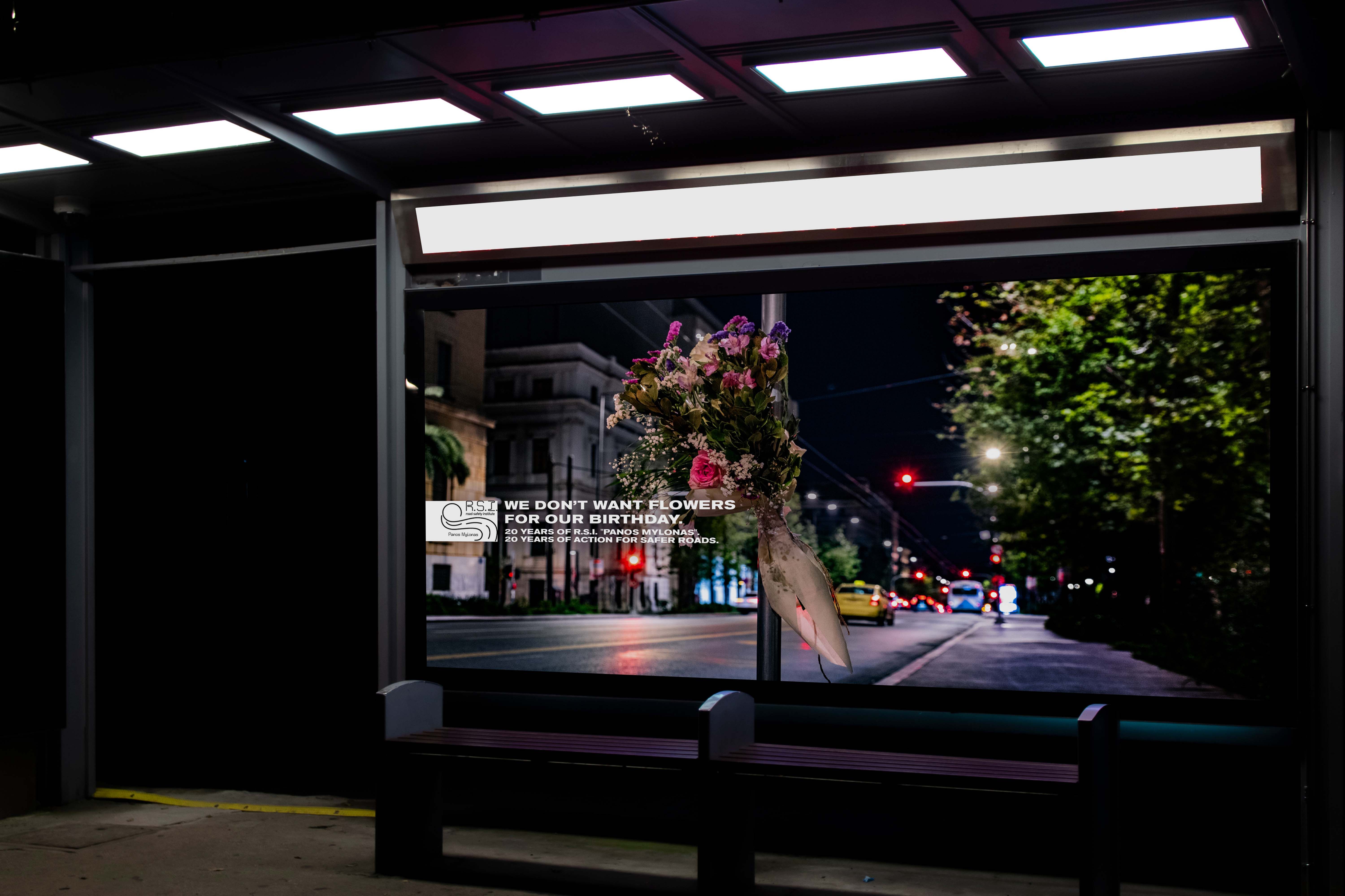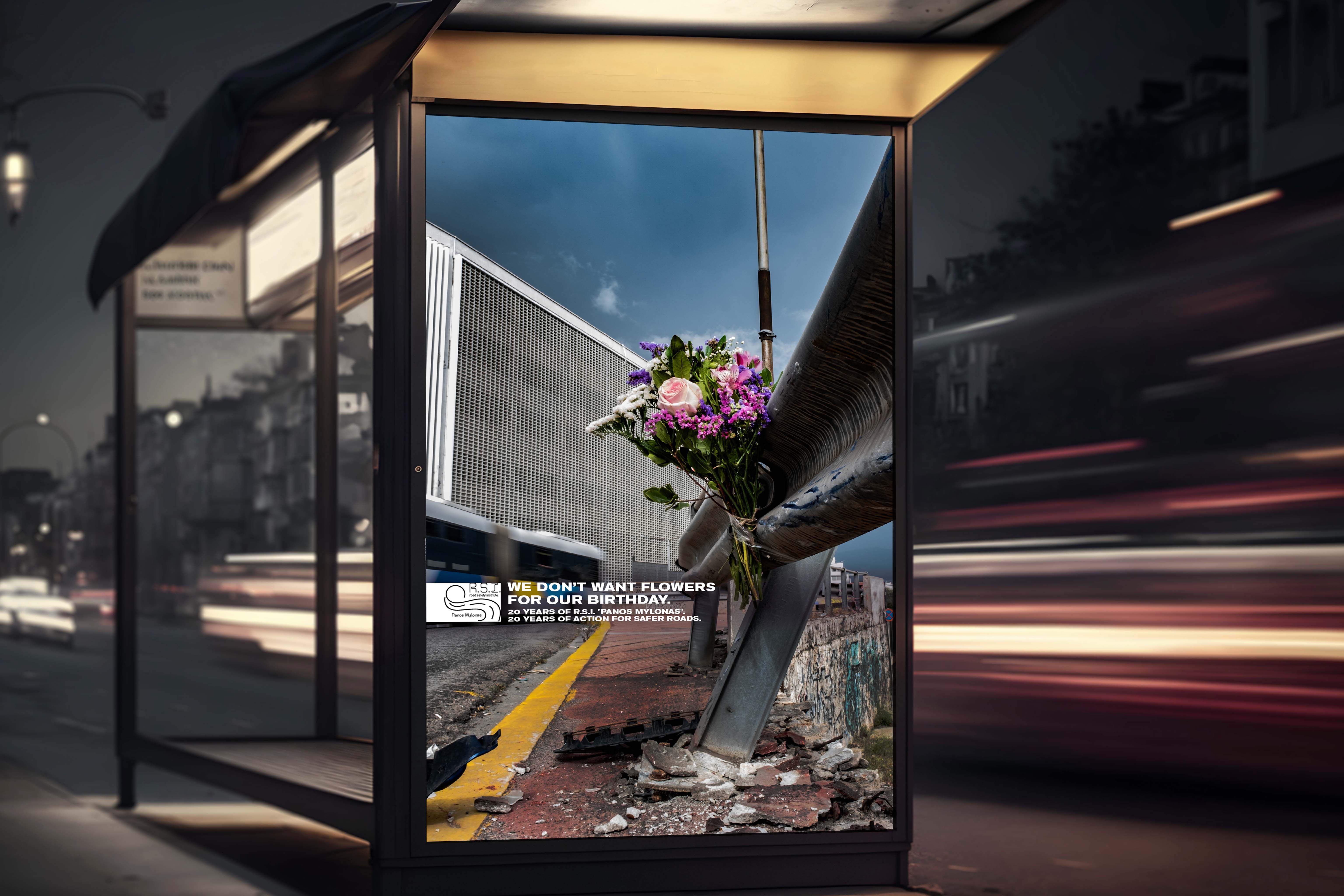 Who would say no to a beautiful bouquet on their birthday? R.S.I. would. R.S.I. did. A drive through Athens was enough to come across an endless number of roadside bouquets, marking the exact spot where someone lost their life in a traffic accident. With a series of raw visuals, we aimed to bring those silent memorials into full view. Not to shock, but to remind. So, if you happen to drive after reading this, remember: