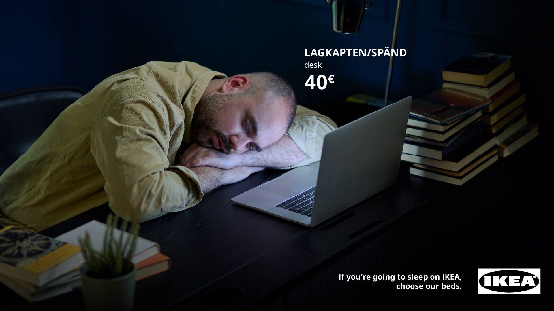 If you’re so sleepy you could sleep anywhere, even on an IKEA desk… perhaps you’re closer to the solution than you think. Connect the dots and see, the solution is indeed made by IKEA.